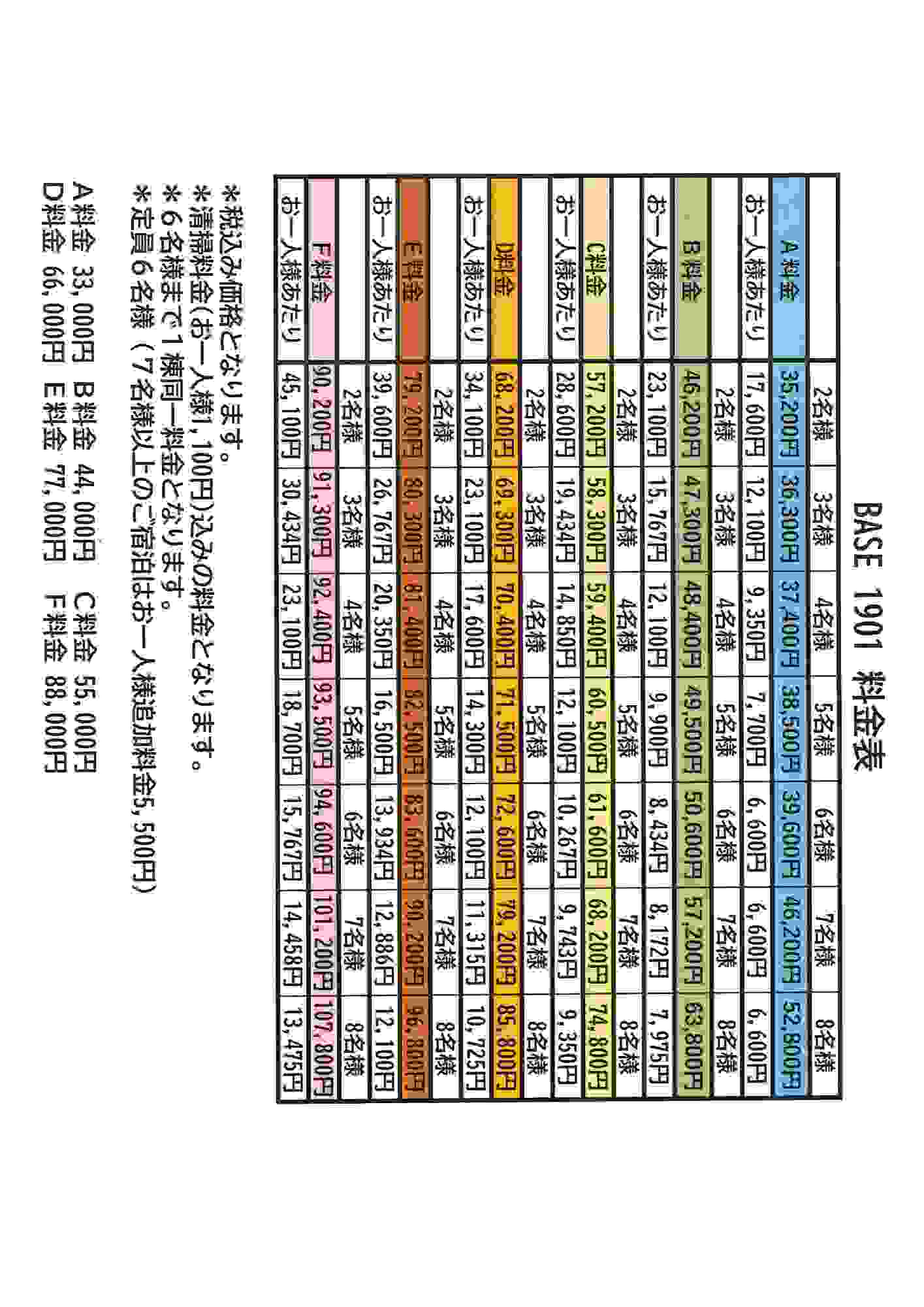 ※曜日、シーズンで料金が変動いたしますので、お問い合わせいただきましたらお見積もりいたします。