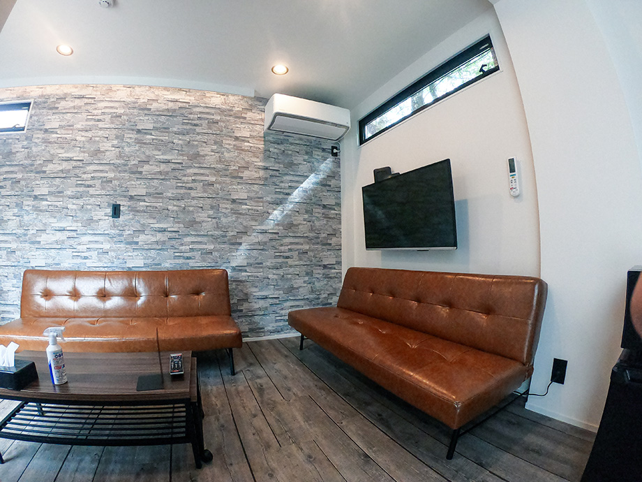 【室内設備】※全棟共通です 冷暖房 キッチン オーブンレンジ 食器 調理器具 テーブル ソファ×2 40型テレビ 自動開閉トイレ ユニットバス ドライヤー シャンプー、コンディショナー、ボディーソープ 人感センサーダウンライト 【キッチン回り】※全棟共通です (20ボウル、お皿、グラス、マグカップ、スプーン、フォーク、ナイフ、箸)×4名分 包丁 まな板 お玉 フライ返し お鍋 フライパン ざる ボール ソムリエナイフ 洗剤 スポンジ 【屋外設備】※全棟共通です 照明 テーブル×2 椅子×4 ※アメニティ(タオル、バスタオル、ヒゲ剃り、クシ、シャワーキャップ、歯ブラシ)はご希望者のみお配りしてます。