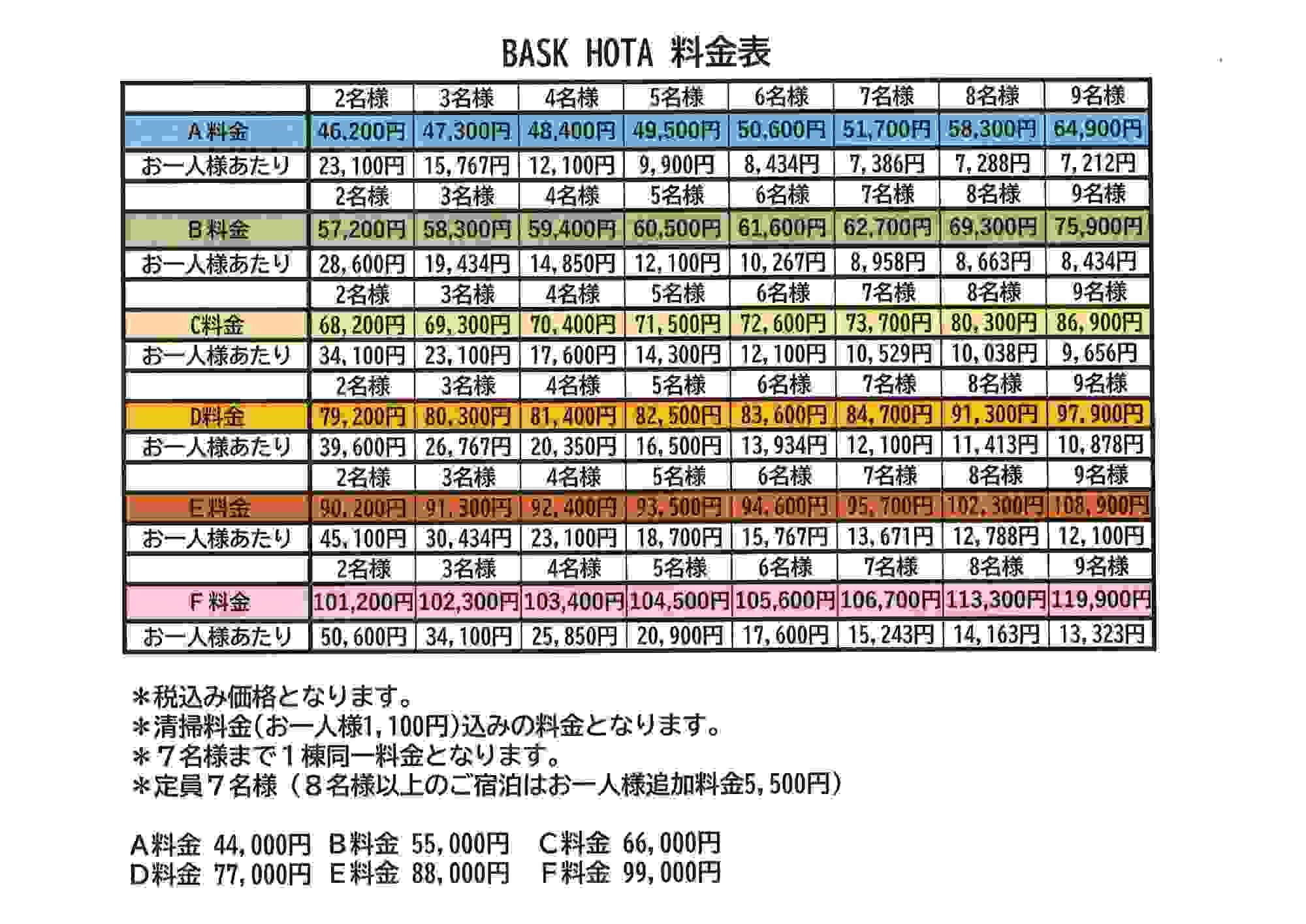 別途ご宿泊人数分の清掃料(お一人様1100円)を頂戴いたします。